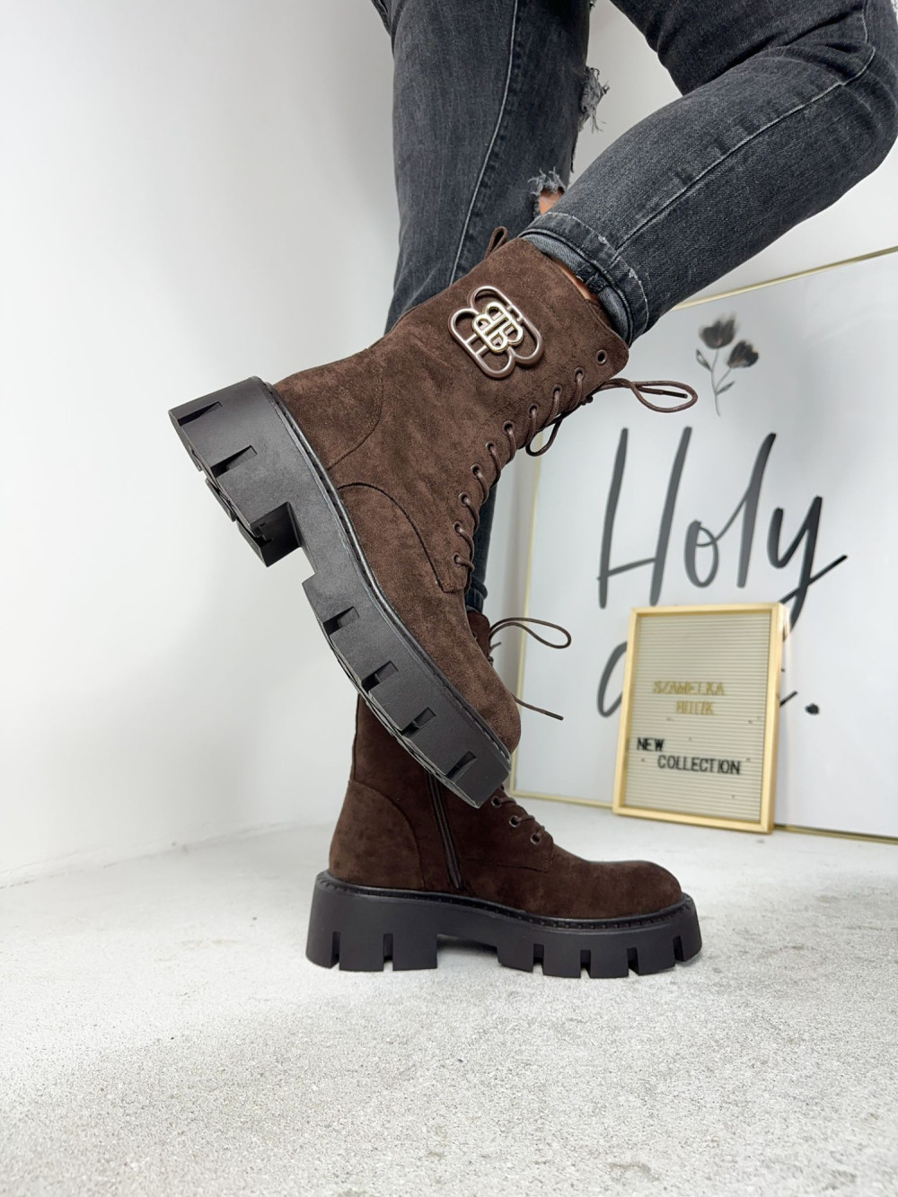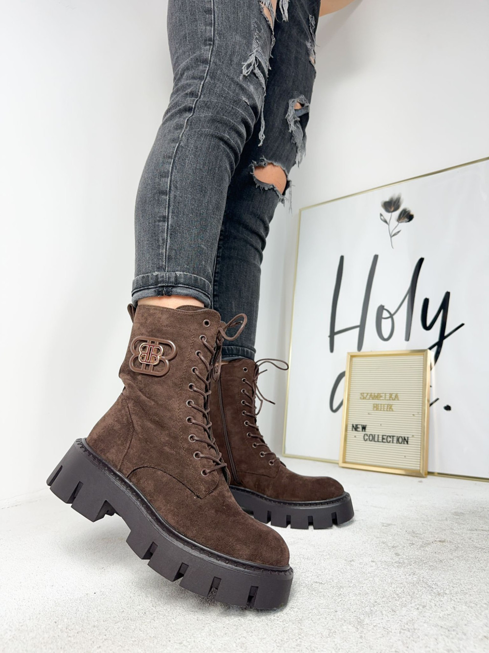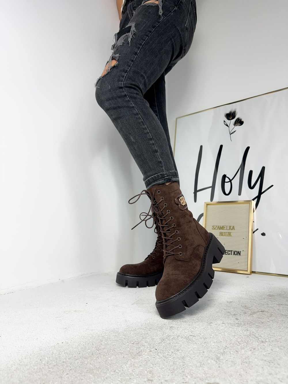 Brązowe zamszowe botki Jane